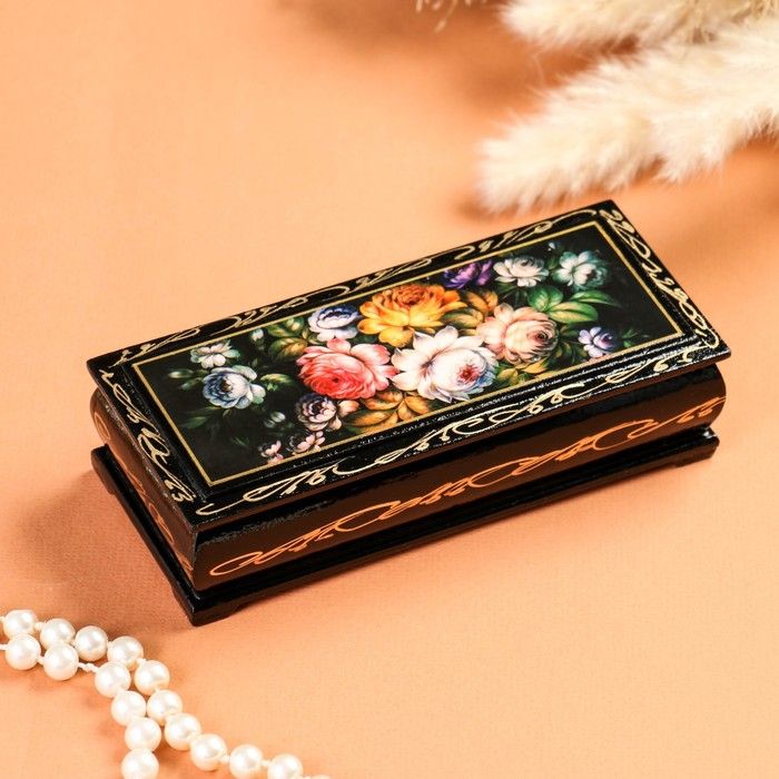 Шкатулка «Жостово», 14×6 см, лаковая миниатюра