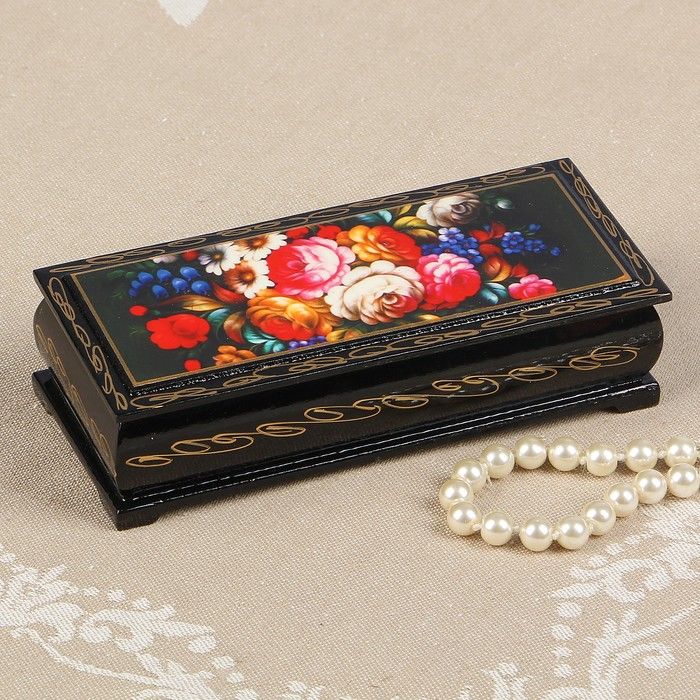 Шкатулка «Жостово», 14×6 см, лаковая миниатюра